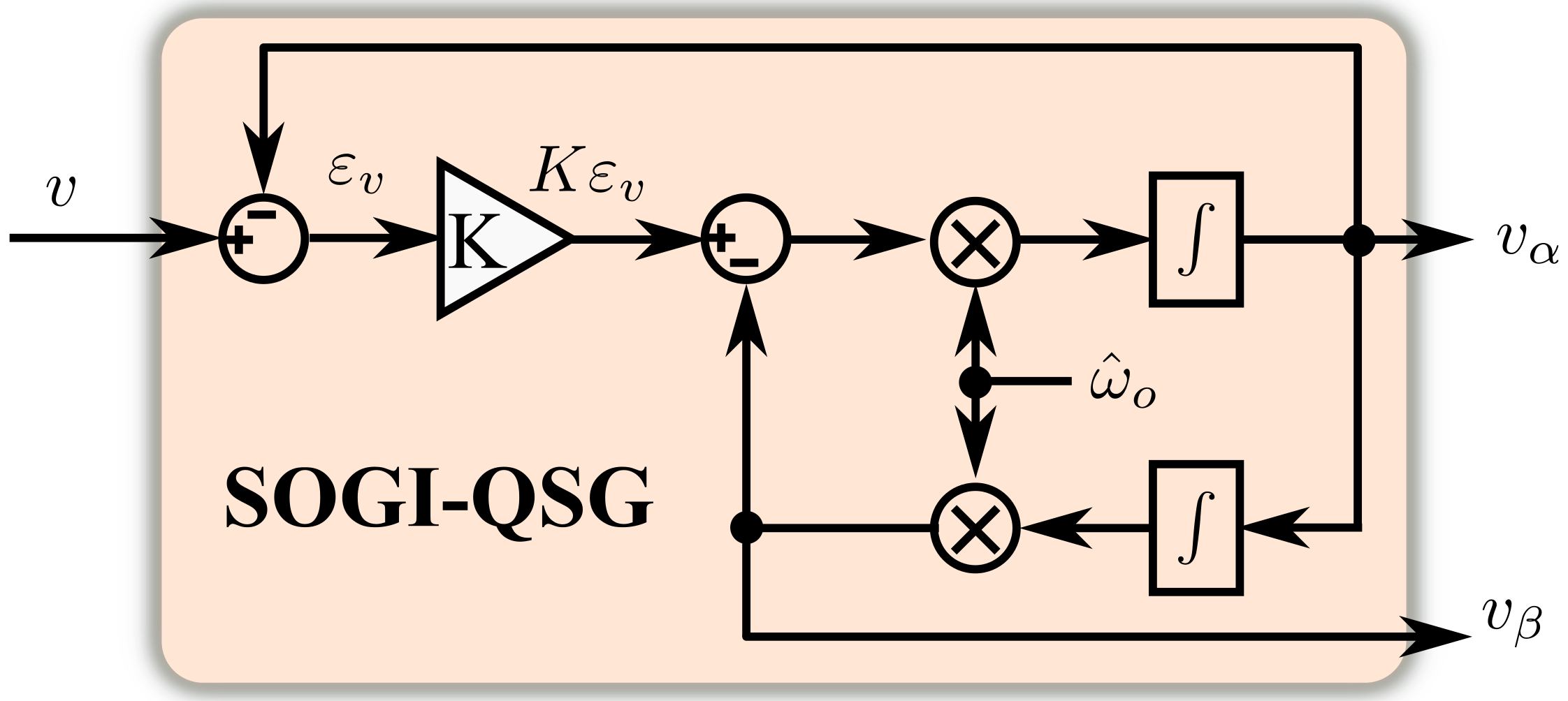 如图20所示,为SOGI-QSG(Second-Order Generalized Integrator Quadrature Signals Generation)的原理框图。