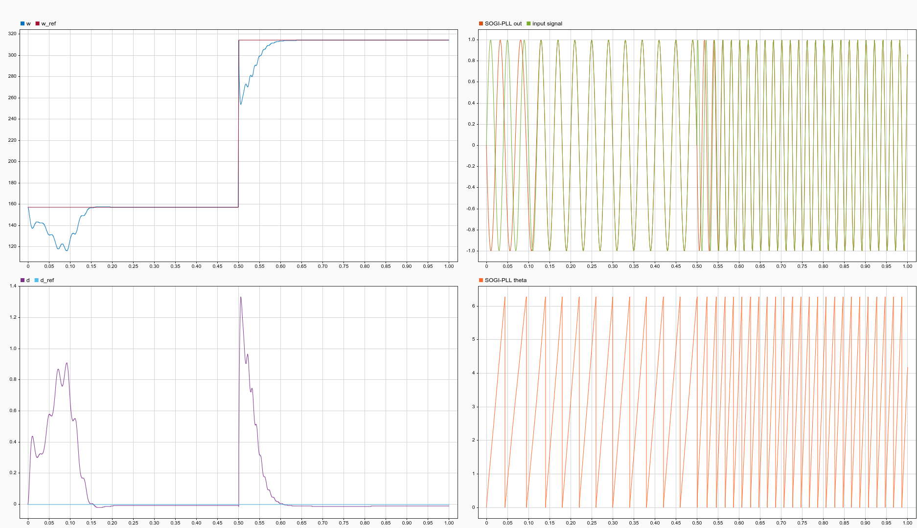 写了这么多理论,放一个基于 SOGI 的 simulink 的仿真波形吧!如图22所示。