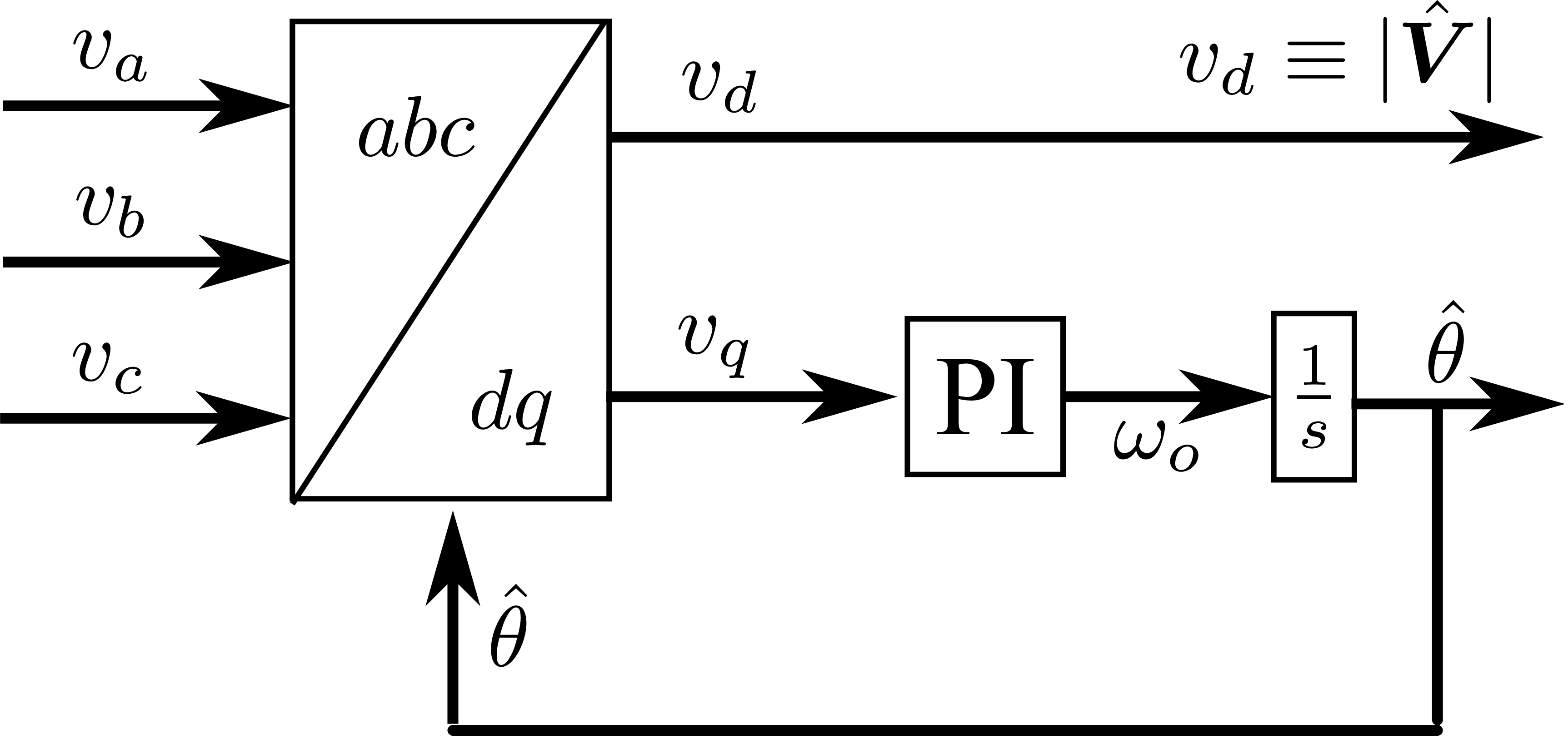 - \(\mathbf{V}_{pll}\) 锁相环的输出电压矢量